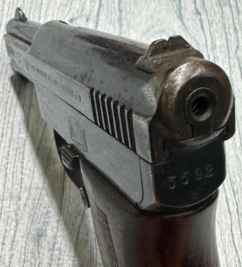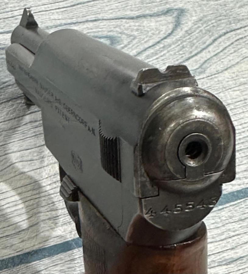PRIMER PISTOLA SEMIAUTOMATICA , PRODUCIDA POR LA MARCA .