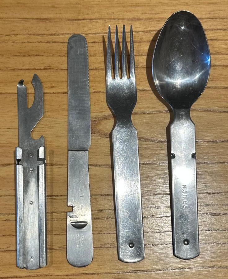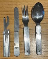 CUCHARA , CUCHILLO , TENEDOR Y ABRE LATAS .