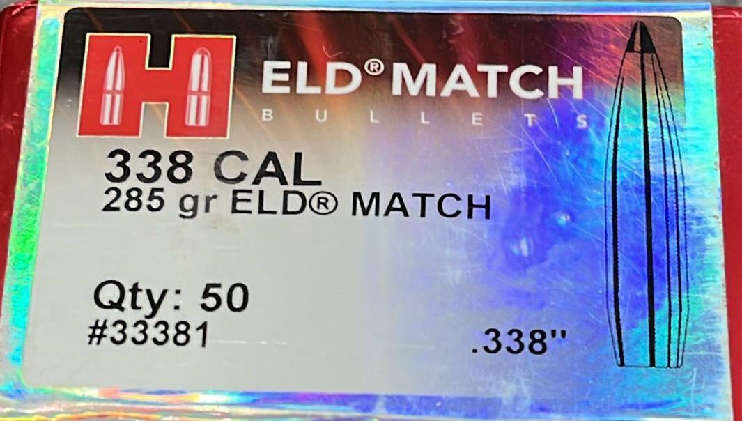 Calibre : 338 (.338#). Peso : 285 Grs . Tipo : Eld - Match