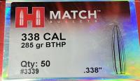 Calibre : 338 . Peso : 285 Grs . Tipo : Bthp. (.338")